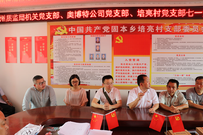 州質(zhì)監(jiān)局機關(guān)黨支部、奧博特公司黨支部、培亮村黨支部聯(lián)合舉辦七一黨建主題活動日座談會。所有黨員積極發(fā)言,針對培亮村的經(jīng)濟發(fā)展問題、農(nóng)村兒童的教育問題展開了熱烈討論。